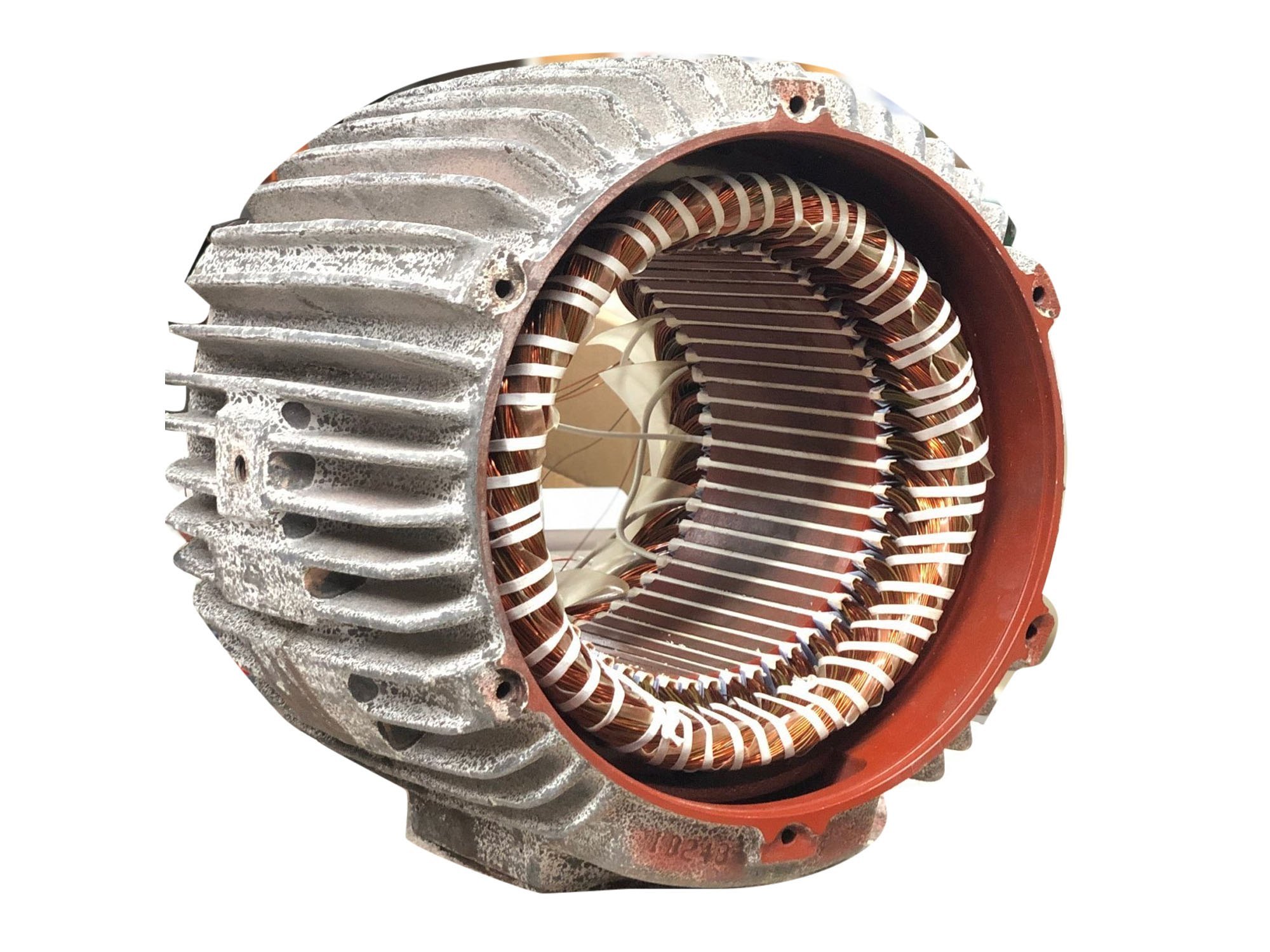 Comprehensive rewind including coil removal, new winding, insulation, testing, and reassembly following industrial best practices